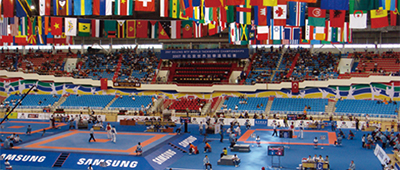 “米兰集团”牌全套跆拳道产品被应用于北京世界跆拳道锦标赛