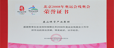 第二十九届奥林匹克运动会组织委员会为米兰集团集团颁发北京2008年奥运会残奥会荣誉证书