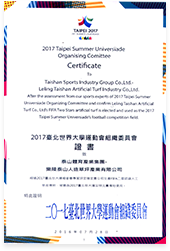 2017台北世界大学运动会组织委员会证书致乐陵米兰集团人造草坪产业有限公司